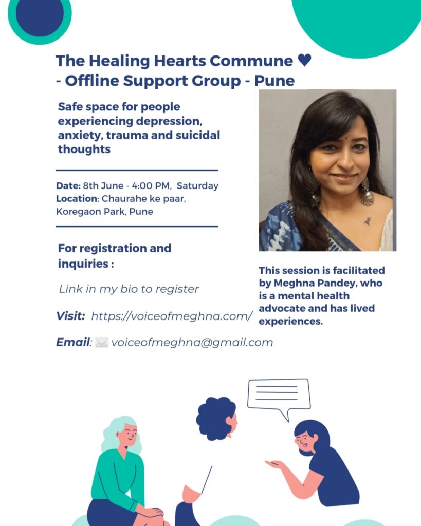 Another awesome thing that happened lately is the support group I have started. The name is ‘Healing Hearts Commune’. It is an offline support group based out of Pune. I have organized two sessions. But I will soon be starting online sessions also for the people who are not in Pune. I am very excited about this initiative. This was the first poster I published for the support group.